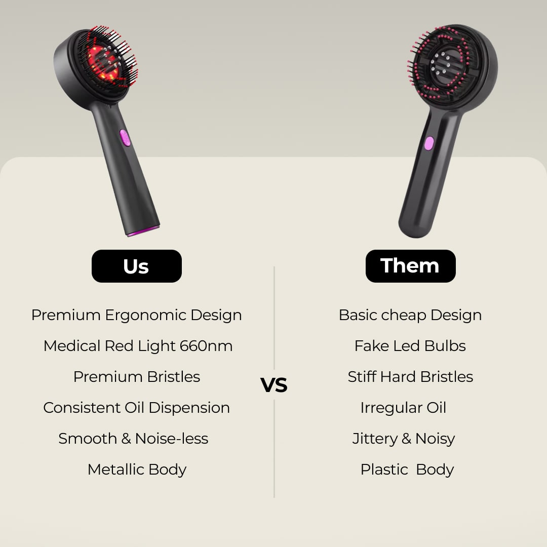 The modern way to massage and oil your scalp along with red light therapy to boost hair growth, make them thick and strong.